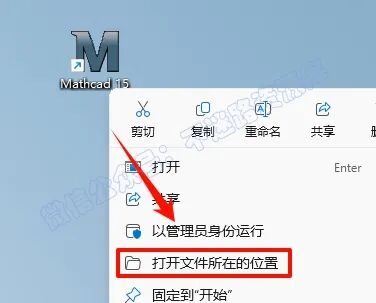16.ÔÚ×ÀÃæÉÏÕÒµ½”Mathcad 15“Èí¼þͼ±ê£¬Êó±êÓÒ¼üµã»÷“´ò¿ªÎļþËùÔÚλÖÔ