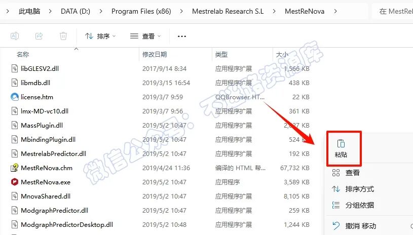 10.返回之前解压的“MestReNova 14中文版”文件夹,双击打开“Crack”文件夹,选中全部文件,鼠标右键点击“复制”