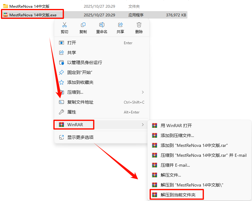 1.选中下载的压缩包,然后鼠标右键选择“解压到当前文件夹”