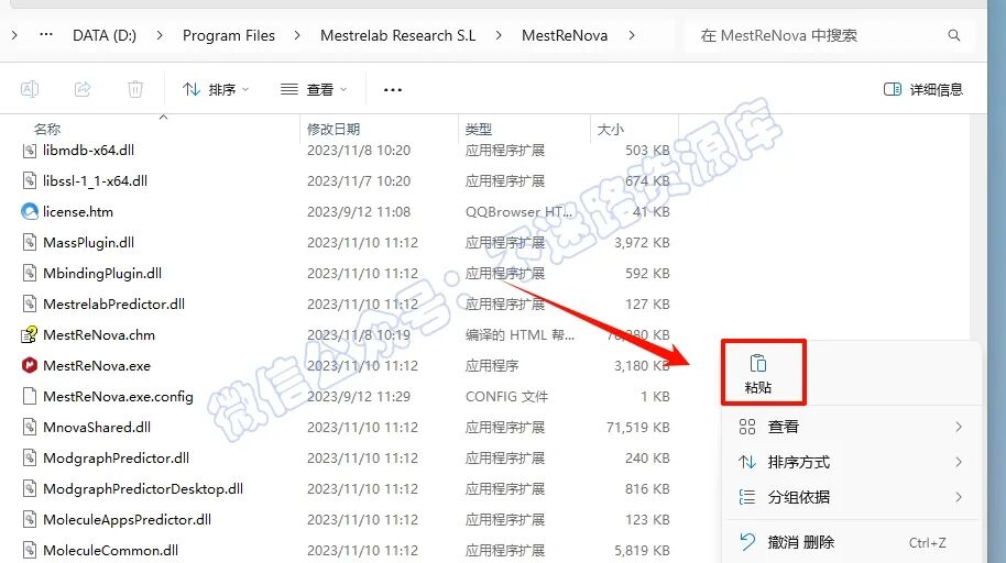 10.返回之前解压的“MestReNova 15中文版”文件夹,双击打开“Crack”文件夹,选中全部文件,鼠标右键点击“复制”