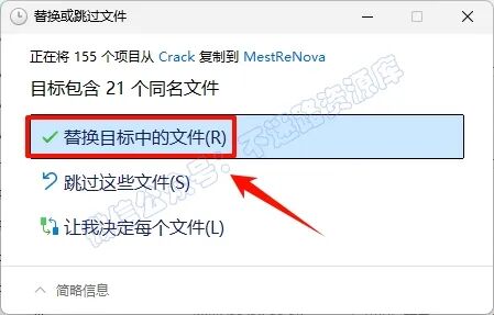 13.点击“替换目标中的文件“(若提示需要管理员权限,勾选“为所有...”,点击“继续”)