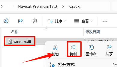 10.·µ»ØÖ®Ç°½âѹµÄ“Navicat Premium 17.3”Îļþ¼Ð£¬Ë«»÷´ò¿ª“Crack”Îļþ¼Ð£¬Ñ¡ÖГwinmm.dll”Îļþ£¬Êó±êÓÒ¼üÑ¡Ôñ“¸´ÖÆ”