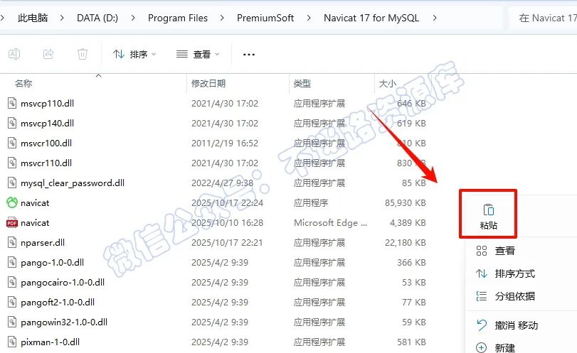 10.·µ»ØÖ®Ç°½âѹµÄ“Navicat for MySQL 17.0.3”Îļþ¼Ð£¬´ò¿ª”Crack“Îļþ¼Ð£¬Ñ¡ÖÐÈ«²¿Îļþ£¬Êó±êÓÒ¼üµã»÷“¸´ÖÆ”