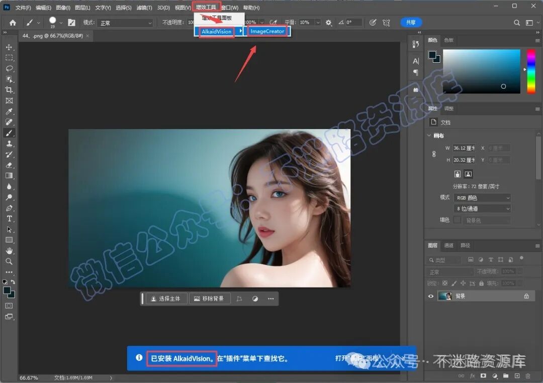 温馨提示:ImageCreator插件安装完成,插件使用需要注册账户,