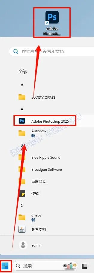 6.µã»÷“¿ªÊ¼“²Ëµ¥À¸£¬µã»÷“ËùÓÐÓ¦ÓÓ£¬ÕÒµ½“Adobe Photoshop“Èí¼þ£¬Êó±ê×ó¼üÍÏ×§µ½×ÀÃæÉϼ´¿É´´½¨×ÀÃæ¿ì½Ý·½Ê½