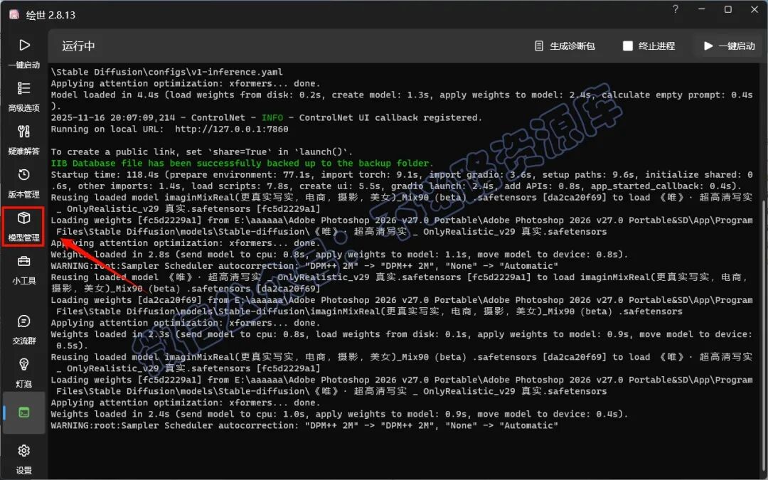 17.PS打开的请先退出,再重新打开PS软件,点击“Update“更新大模型,点击模型名字可以选择切换不同的大模型