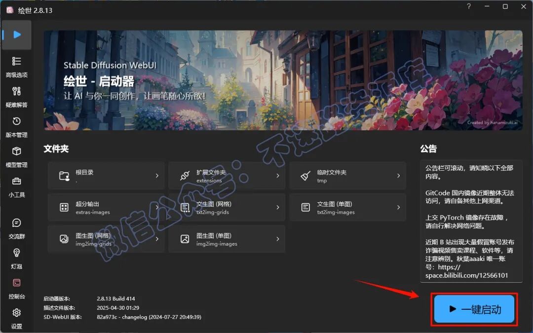 温馨提示:AI生成功能必须启动SD软件,不需要使用Stable Diffusion(AI生成功能)时,可以直接启动PS软件独立运行使用