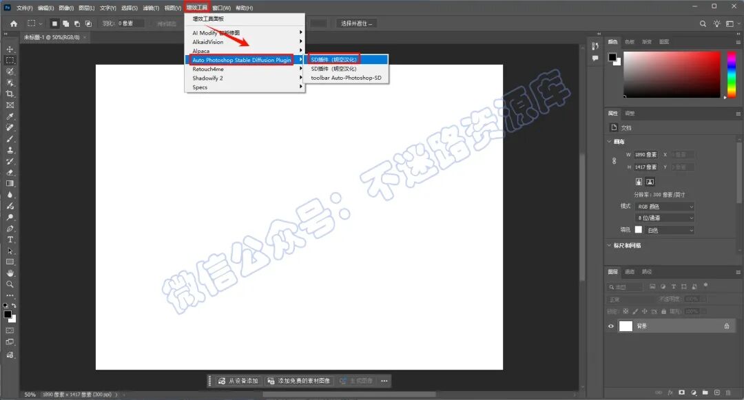11.返回PS软件界面,依次点击“增效工具—Auto Photoshop Stable Diffusion Plugin—SD插件”
