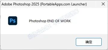 温馨提示:PS2025便携版版每次关闭提示”Adobe Photoshop END OF WORK“是什么意思?