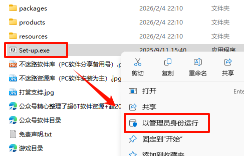 2.´ò¿ª¸Õ¸Õ½âѹµÄÎļþ¼Ð£¬Êó±êÓÒ¼üµã»÷“Setup.exe”Ñ¡Ôñ“ÒÔ¹ÜÀíÔ±Éí·ÝÔËÐГ