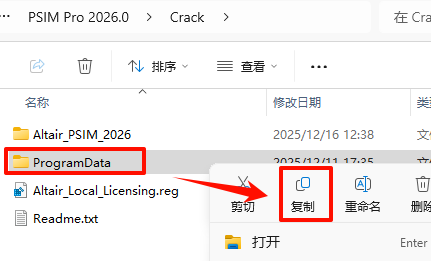 15.·µ»ØÖ®Ç°½âѹµÄ“PSIM Pro 2026.0“Îļþ¼Ð£¬ÒÀ´Î´ò¿ª“Crack—Altair_PSIM_2026”Îļþ¼Ð£¬Ñ¡ÖиÃÎļþ¼ÐϵÄÈ«²¿Îļþ£¬Êó±êÓÒ¼üÑ¡Ôñ“¸´ÖÆ”