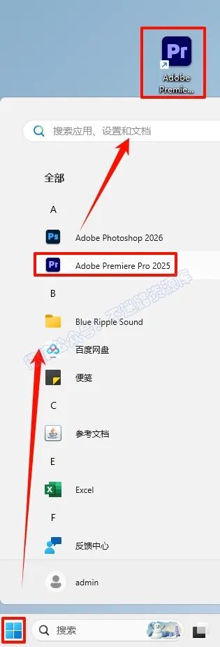 6.µã»÷“¿ªÊ¼“²Ëµ¥À¸£¬µã»÷“ËùÓÐÓ¦ÓÓ£¬ÕÒµ½“Adobe Premiere Pro“Èí¼þ£¬Êó±ê×ó¼üÍÏ×§µ½×ÀÃæÉϼ´¿É´´½¨×ÀÃæ¿ì½Ý·½Ê½