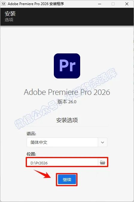 3.可以选择软件安装路径,建议和教程中的保持一致,本例安装在D盘(可以在其它磁盘里创建一个新的文件夹,安装路径不要出现中文),点击“继续”