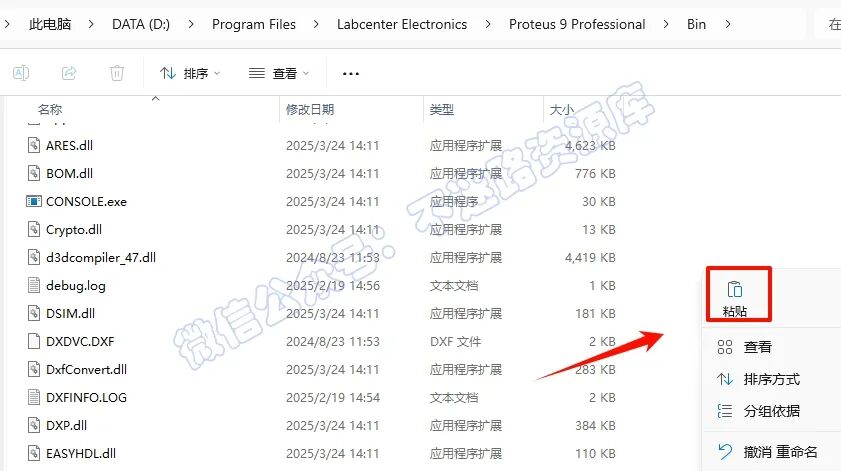 17.ÒÀ´Î´ò¿ªÈí¼þ°²×°Â·¾¶£ºD:\Program Files\Labcenter Electronics\Proteus 9 Professional\Bin£¨²Î¿´µÚ8²½£©£¬ÔÚ´ò¿ªµÄÎļþ¼Ð¿Õ°×´¦£¬Êó±êÓÒ¼ü“Õ³Ìù”¸Õ²Å¸´ÖƵÄÎļþ