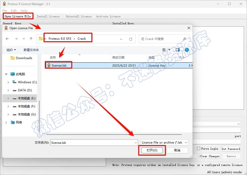 13.µã»÷“Open Licence File”£¬Ñ¡ÖнâѹµÄ°²×°°üÀïÃæµÄCrackÎļþ¼ÐÀïÃæµÄ“license.lxk”Îļþ£¬µã»÷“´ò¿ª”