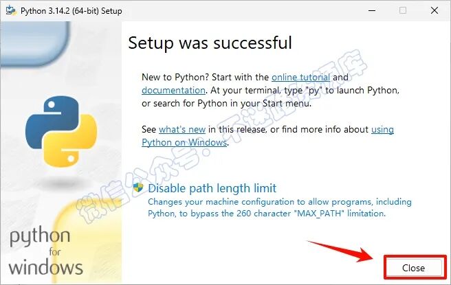 7.安装完成后,点击”Close”