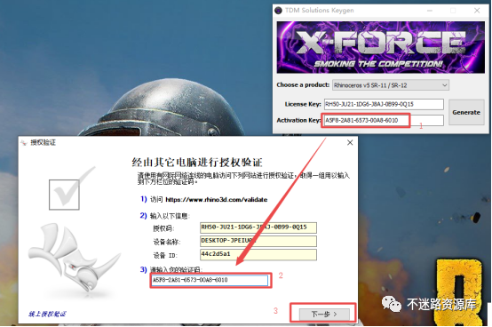 14.¸´ÖÆ“Activatation Key”ºóÃæµÄÑéÖ¤Â룬½«ÊÚȨÂëÕ³Ìùµ½“ÇëÊäÈëÄúµÄÑéÖ¤Â딿òÖУ¬µã»÷“ÏÂÒ»²½”