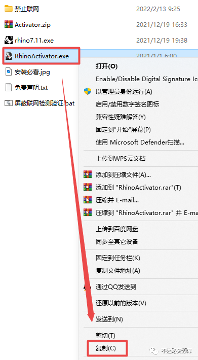 9.ÕÒµ½“RhinoActivator.exe”Îļþ£¬Êó±êÓÒ¼üÑ¡Ôñ“¸´ÖÆ”