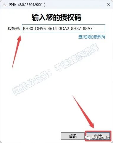 16.返回打开的激活工具界面,复制Validation Code粘贴在验证码框中(快捷键Ctrl+V),点击“继续”