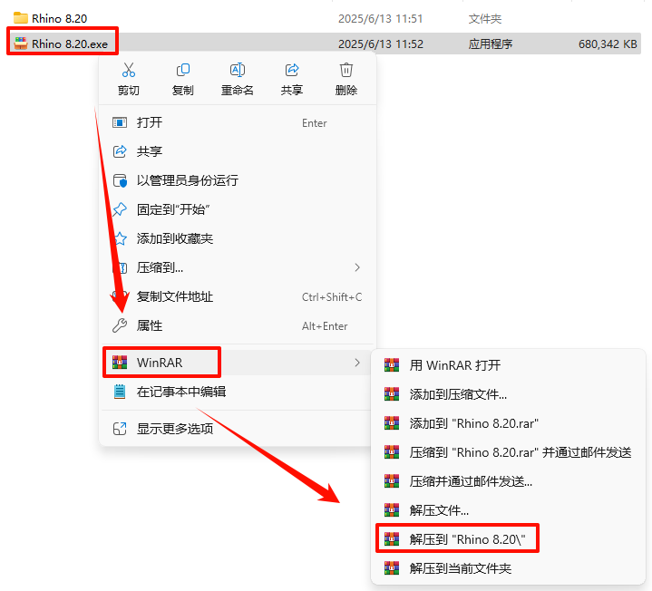 1.Ñ¡ÖÐÏÂÔØµÄѹËõ°ü£¬È»ºóÊó±êÓÒ¼üÑ¡Ôñ½âѹµ½“Rhino 8.20”