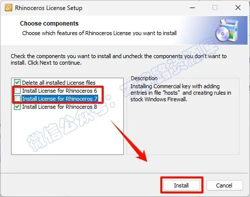 9.È¡Ïû¹´Ñ¡“Rhinoceros 7ºÍRhinoceros 6”Á½Ïµã»÷“Install”