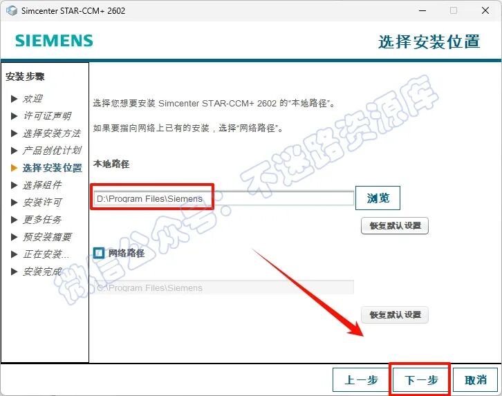 8.Ñ¡ÔñÈí¼þ°²×°Â·¾¶£¬½¨ÒéºÍ½Ì³ÌÖеı£³ÖÒ»Ö£¬±¾Àý°²×°µ½DÅÌ£¨½«Â·¾¶µØÖ·ÖеÄÊ××Ö·ûC¸ÄΪD±íʾ°²×°µ½DÅÌ£¬°²×°Â·¾¶²»Òª³öÏÖÖÐÎÄ£©£¬µã»÷“ÏÂÒ»²½”