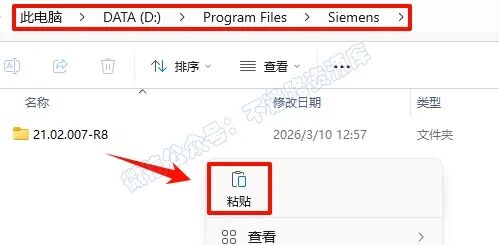 17.ÒÀ´Î´ò¿ªÈí¼þ°²×°Â·¾¶“D:\Program Files\Siemens”(²Î¿´µÚ8²½)£¬ÔÚ´ò¿ªµÄÎļþ¼Ð¿Õ°×´¦£¬Êó±êÓÒ¼ü“Õ³Ìù”¸Õ²Å¸´ÖƵÄÎļþ(ÈôÌáʾÐèҪȨÏÞ£¬¹´Ñ¡“ΪËùÓÐ...”£¬µã»÷“¼ÌÐø”)