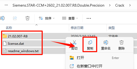 16.·µ»ØÖ®Ç°½âѹµÄ“Siemens.STAR-CCM+2602_21.02.007.R8.Double.Precision“Îļþ¼Ð£¬Ë«»÷´ò¿ª“Crack”Îļþ¼Ð£¬Ñ¡ÖиÃÎļþ¼ÐϵÄÈ«²¿Îļþ£¬Êó±êÓÒ¼üÑ¡Ôñ“¸´ÖÆ”