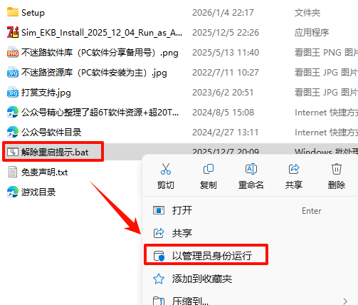 2.´ò¿ª¸Õ¸Õ½âѹµÄÎļþ¼Ð£¬Êó±êÓÒ¼üµã»÷“½â³ýÖØÆôÌáʾ.bat”Ñ¡Ôñ“ÒÔ¹ÜÀíÔ±Éí·ÝÔËÐД