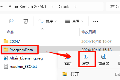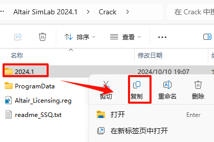 21.·µ»ØÖ®Ç°½âѹµÄ“Altair SimLab 2024.1“Îļþ¼Ð£¬´ò¿ª“Crack”Îļþ¼Ð£¬Ñ¡ÖГ2024.1“Îļþ¼Ð£¬Êó±êÓÒ¼üÑ¡Ôñ“¸´ÖÆ”