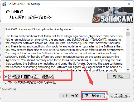 4.点击“Browse”更改路径(建议和教程中的保持一致,预先在C盘创建一个名为“SolidCAM 2020”的文件夹),然后点击“Next”