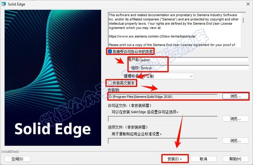 9.¹´Ñ¡“ÎÒ½ÓÊÜ...“£¬ÌîдÐÅÏ¢£¬È¡Ïû¹´Ñ¡“°²×°Ó¢Îİ汾”£¬Ñ¡ÔñÈí¼þ°²×°Â·¾¶£¬½¨ÒéºÍ½Ì³ÌÖеı£³ÖÒ»Ö£¬±¾Àý°²×°µ½DÅÌ£¨½«Â·¾¶µØÖ·ÖеÄÊ××Ö·ûC¸ÄΪD±íʾ°²×°µ½DÅÌ£¬°²×°Â·¾¶²»Òª³öÏÖÖÐÎÄ£©£¬µã»÷“°²×°”