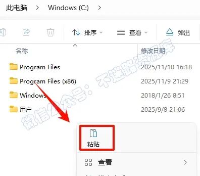 3.´ò¿ªCÅ̸ùĿ¼£¬ÔÚÎļþ¼Ð¿Õ°×´¦£¬Êó±êÓÒ¼ü“Õ³Ìù”¸Õ²Å¸´ÖƵÄÎļþ