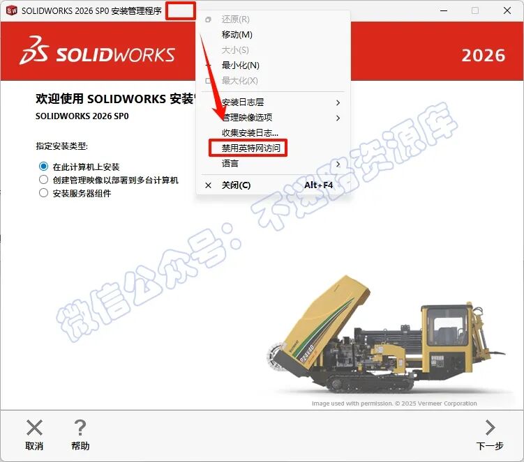 12.Êó±ê·ÅÔÚ°²×°½çÃæ¶¥²¿”...°²×°¹ÜÀí³ÌÐò“ºóÃæµÄ¿Õ°×´¦£¬Êó±êÓÒ¼üÑ¡Ôñ“½ûÓÃÓ¢ÌØÍø·ÃÎÊ”