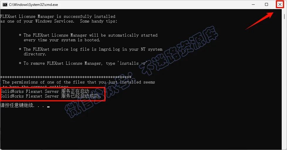 8.Ìáʾ“·þÎñÒѾÆô¶¯³É¹¦“£¬µã»÷ÓÒÉϽǵēX“¹Ø±Õ