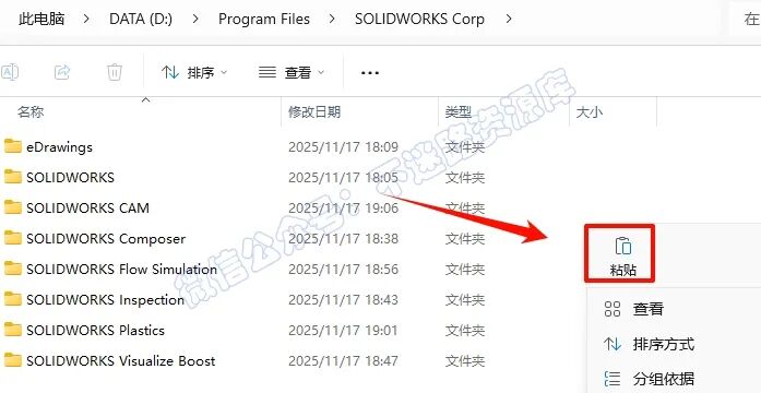 26.Ë«»÷´ò¿ª×ÀÃæÉÏ“´ËµçÄÔ”£¬ÒÀ´Î´ò¿ªÈí¼þ°²×°Î»ÖãºD:\Program Files\SOLIDWORKS Corp£¨²Î¿´µÚ16²½¸ü¸ÄµÄ°²×°Â·¾¶£¬Ä¬ÈÏΪCÅÌ£©£¬ÔÚ´ò¿ªµÄÎļþ¼Ð¿Õ°×´¦£¬Êó±êÓÒ¼ü“Õ³Ìù”¸Õ²Å¸´ÖƵÄÎļþ