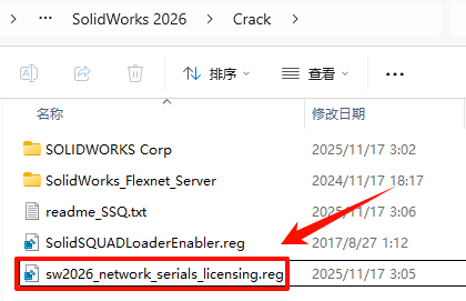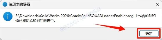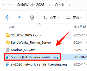 21.·µ»ØÖ®Ç°½âѹµÄ“SolidWorks 2026”Îļþ¼Ð£¬´ò¿ª”Crack“Îļþ¼Ð£¬Ë«»÷”SolidSQUADLoaderEnabler.reg“×¢²á±íÎļþ