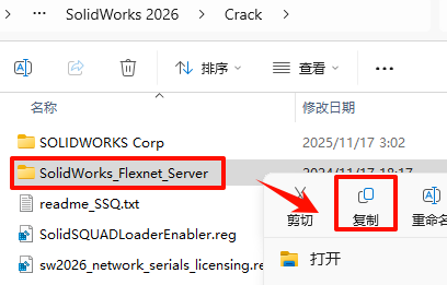 5.Ñ¡ÖГSolidWorks_Flexnet_Server”Îļþ¼Ð£¬Êó±êÓÒ¼üÑ¡Ôñ“¸´ÖÆ”