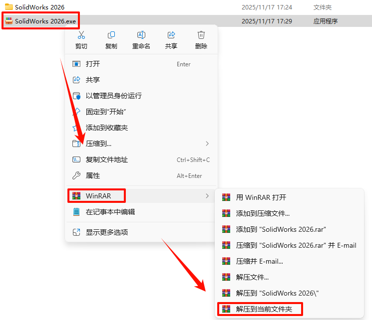 1.Ñ¡ÖÐÏÂÔØµÄѹËõ°ü£¬È»ºóÊó±êÓÒ¼üÑ¡Ôñ”½âѹµ½µ±Ç°Îļþ¼Ð“