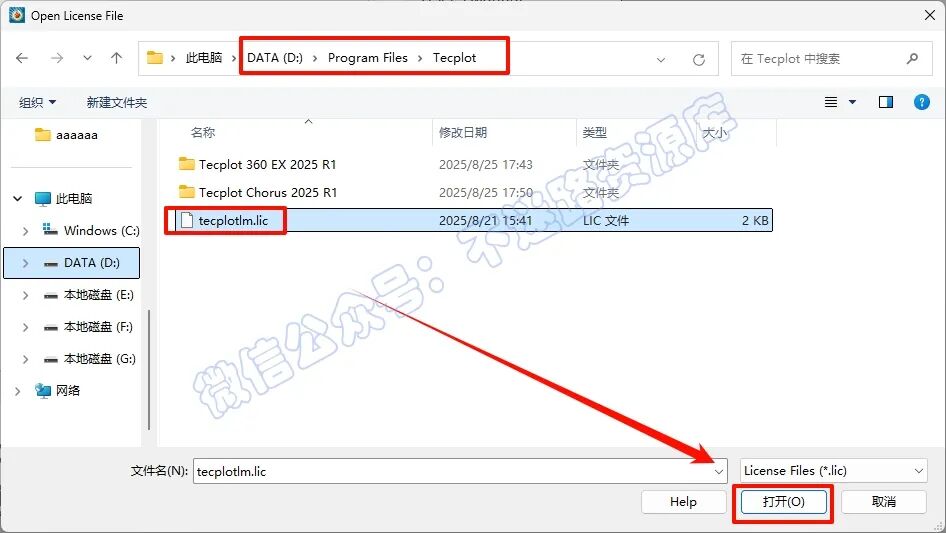 18.ä¯ÀÀÑ¡ÔñµÚ13²½Õ³ÌùµÄ“tecplotlm.lic”Îļþ£¬µã»÷“´ò¿ª”