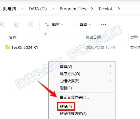 10.·µ»ØÖ®Ç°½âѹµÄ“Tecplot RS 2024 R1 M1 v2024.1.0.67830”Îļþ¼Ð£¬Ë«»÷´ò¿ª“Crack”Îļþ¼Ð£¬Ñ¡ÖГTecRS 2024 R1”Îļþ£¬Êó±êÓÒ¼üµã»÷“¸´ÖÆ”