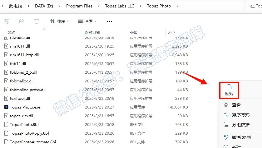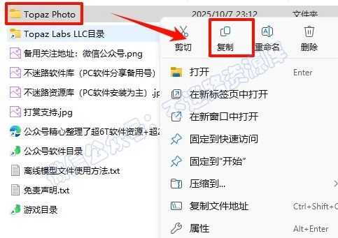 26.打开解压的文件夹,选中”Topaz Photo“文件夹,鼠标右键点击“复制”文件夹