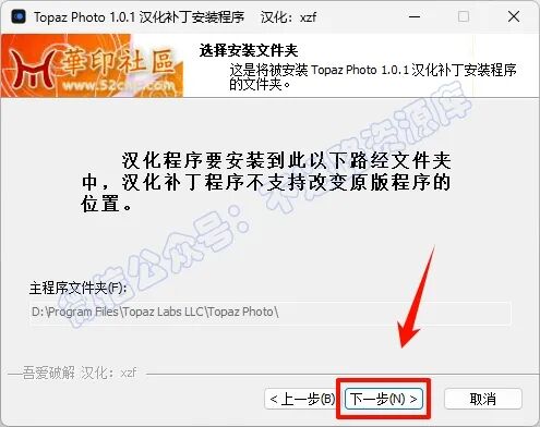 16.返回之前解压的“Topaz Photo Pro 1.0.1汉化版”文件夹,选中“汉化补丁安装程序-W.exe”文件,鼠标右键点击“以管理员身份运行”