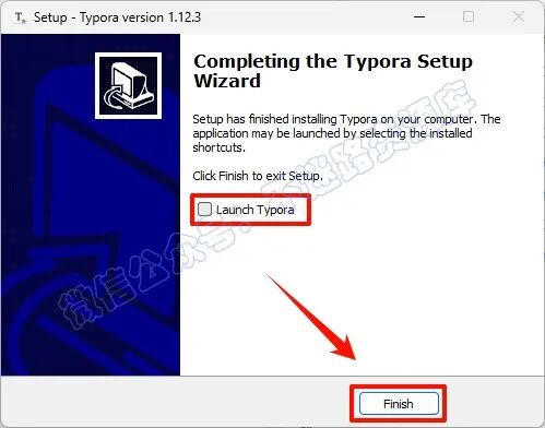 8.È¡Ïû¹´Ñ¡“Launch Typora“£¬µã»÷“Finish“