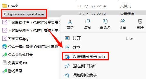 2.´ò¿ª¸Õ¸Õ½âѹµÄÎļþ¼Ð£¬Êó±êÓÒ¼üµã»÷“typora-setup-x64.exe”Ñ¡Ôñ“ÒÔ¹ÜÀíÔ±Éí·ÝÔËÐД