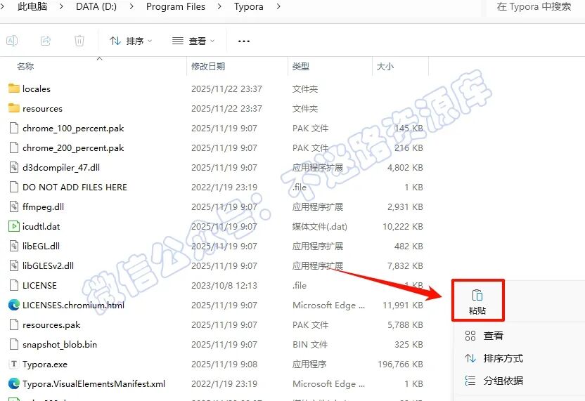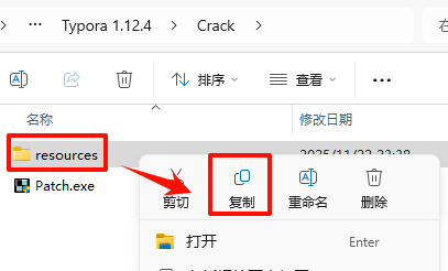 9.·µ»ØÖ®Ç°½âѹµÄ“Typora v1.12.4”Îļþ¼Ð£¬Ë«»÷´ò¿ª“Crack”Îļþ¼Ð£¬Ñ¡ÖГresources”Îļþ¼Ð£¬Êó±êÓÒ¼üµã»÷“¸´ÖÆ”
