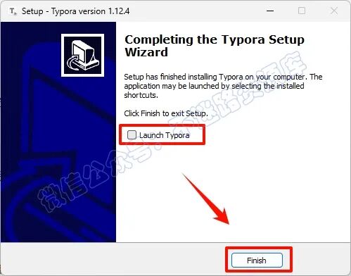 8.È¡Ïû¹´Ñ¡“Launch Typora“£¬µã»÷“Finish“