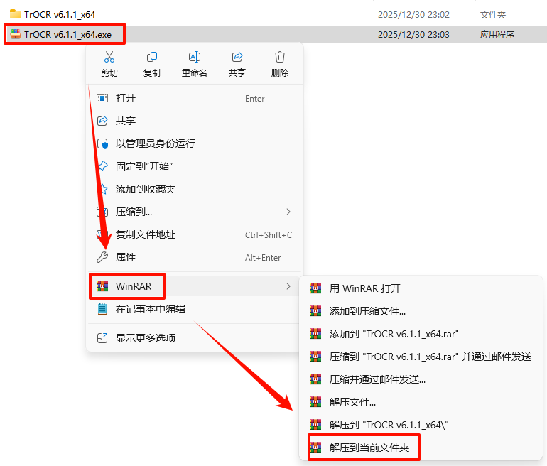 1.选中下载的压缩包,然后鼠标右键选择“解压到当前文件夹”