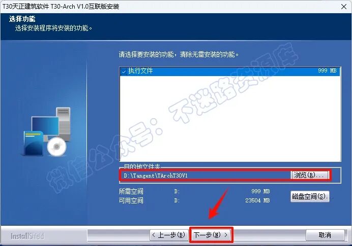 4.点击“浏览“可以选择软件安装路径,建议和教程中的保持一致,本例安装到D盘(将路径地址中的首字符C改为D表示安装到D盘,安装路径不要出现中文),点击“下一步”