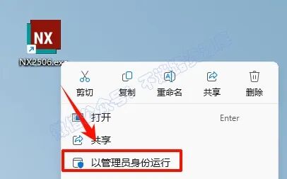 3.在桌面上,鼠标右键点击“NX2506”软件图标选择“以管理员身份运行”